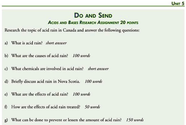 Solved Uni 5 Do And Send Acids And Bases Research Assignment 20 Points Rescarch The Ropic Of Acid Rain In Canada And Answer The Following Questions What Acid Rain Short Anser What Are